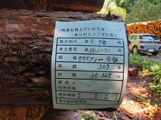 本数:0 材積:72.384㎥No:3022 カラマツ 原料材