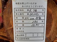 本数:286 材積:38.831㎥No:3060 スギ 原料材