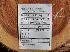 本数:742 材積:70.334㎥No:3074 スギ 直