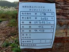 本数:329 材積:65.117㎥No:3056 スギ 直